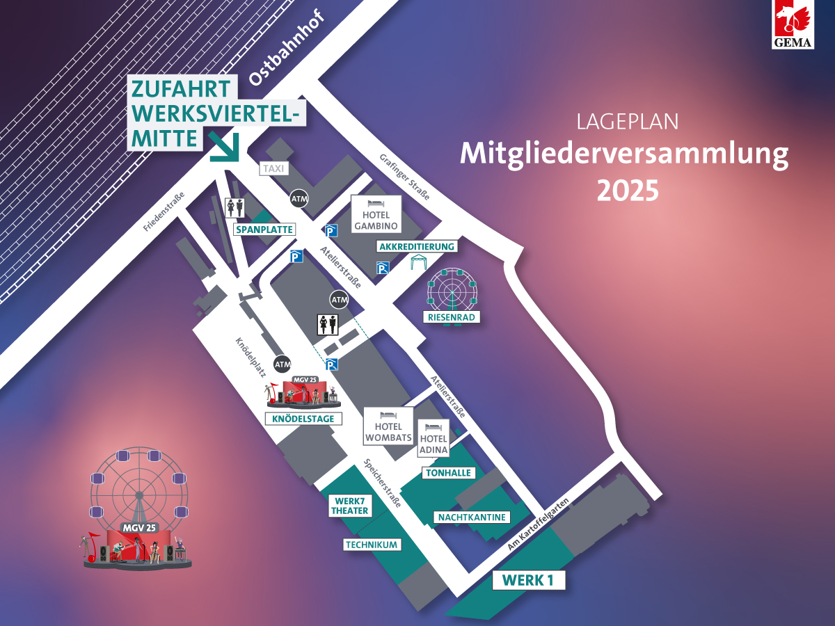 As usual, you will have the opportunity to talk to GEMA employees at our information stands at the General Assembly 2025. The stands will be available on all three days of the event. You can already book a personal consultation appointment at one of the 10 information stands in our MGV-Live tool.
